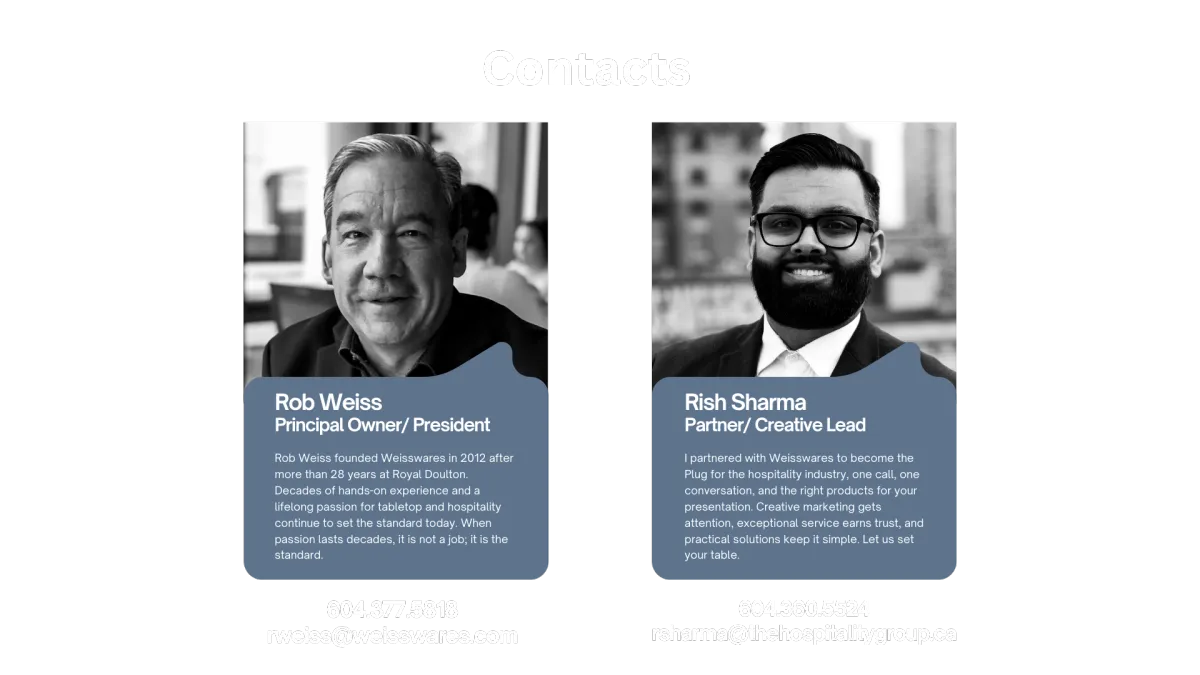 Weisswares Ltd is a manufacturers’ rep agency offering foodservice solutions to dealers and operators alike We have over 30 years of sales experience and market knowledge in the foodservice industry.and have operated Weisswares Ltd since 2013